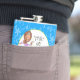 Fun bright blue floral flask with funny dancing lady and sassy saying about Vodka.