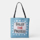 "Trust The Process" is a cute inspirational or motivational quote with a white accent shape surrounded by white textured whimsical dots.