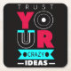 This striking motivational typography design features the phrase “Trust Your Crazy Ideas” arranged in a bold, modern layout. The word “YOUR” is emphasized using oversized letters in red and white, creating a strong visual hierarchy. The letter “O” is stylized as a target with concentric circles, symbolizing focus and belief.