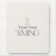 Add calm inspiration to your workspace with this minimalist motivational mouse pad featuring the quote “Trust Your Timing.” Created in the soft neutral Loviax Studio aesthetic, it combines elegant typography, a modern hourglass icon, and a clean layout for a peaceful and stylish desk accessory.