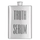 The product is a good size and came exactly as it was pictured. The lid is not attached to the flask, which could be dangerous on drunken nights... The print came out surprisingly well and looks very sharp. Would definitely recommend.