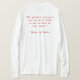 I love this shirt. I had written to the artist asking her if this picture was available on a shirt, and she wrote me back telling me where I could find the shirt. These shirts can be custom made to have a different saying. I loved this saying and went with it. The artist wrote me back later to tell me that she had seen my order go through. How's that for service? Pretty special. It's just as displayed. Perfect!
