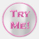 Try Me Grey Fuchsia Pink Tester Sample Container Classic Round Sticker