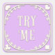 "Try Me" Wonderland Tea Party Elegant Purple Square Sticker