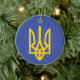 Christmas ornament featuring the Ukrainian tryzub on one side and веселих свят! (Happy Holidays) on the other side