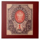 A one-ruble Russian postage stamp from the Tsarist period, issued in 1889 (Scott Catalogue number 45), showing the imperial double-headed eagle.