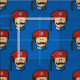 Head of Greek Evzone (tsolias) cartoon, wearing red fez. Seamless pattern. Custom background colour.