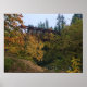 Beautiful autumn morning along the Tualatin River in Tualatin, Oregon. Pretty colourful fall leaves reflecting in the still waters, with an old railroad bridge that extends over the river. Photo taken October 2017.