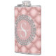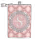 Tufted Sparkly Diamonds Blush Pink Monogram Hip Flask