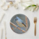 This paper plate features a tufted titmouse bird sitting in a smokebush. Great for picnics and parties.
