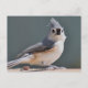 Cute tufted titmouse get his feathers ruffled on a windy day