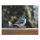 Sweet titmouse pauses on deck rail for photo