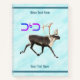 An image of a bull caribou, or reindeer, with the word "tuktu" (caribou) spelled out in the Inuit (Eskimo) alphabet. All superimposed on a snowy background image. There are two places for you to add your own additional text.