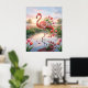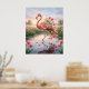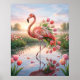 A stunning tulip flamingo stands elegantly in reflective spring waters where floral beauty meets graceful wildlife. Realistic flamingo anatomy blends with layered tulip petals, smooth stems, fresh leaves, and flowing feather textures in pink, coral, blush, and ivory tones. Mirrored water, sunrise mist, reeds, distant tulip fields, and soft pastel skies create a luminous upscale atmosphere. This chic fantasy bird design adds color and elegance to bathrooms, feminine interiors, bedrooms, or gift collections. Perfect for flamingo lovers, floral decor fans, and modern spring styling.
