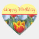 Tulip Flower Red Yellow floral Happy Birthday Heart Sticker