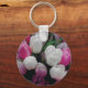 Tulip flowers custom photo keychain. Pink and white tulip flowers bouquet photograph image. Cute gift idea for florist or flower company. Make your own key chain with floral design.