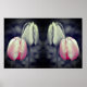 Lovely pink tulip pair with lingering raindrops done in black and white with partial colour mirror abstract. Flower photography by Susan. For more floral, animal, and nature posters and prints, please visit my poster gallery Smilin' Eyes Posters. This image is available on many cards and products in my main store Smilin' Eyes Treasures.