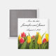 A photograph of a beautiful group of tulips is the feature of this save the date wedding magnet. The script is customisable for your names, dates, and any other wedding information you choose to put on it.