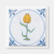 Vintage blue and white delft tile art of yellow tulips and simple floral elements in blue with a hand painted look.