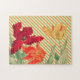My original artwork is featured on this floral puzzle, consisting of a green and orange retro striped background and a vintage illustrated trio of tulips in orange, yellow and red. The size of this unique flower puzzle is 11” x 14”, and in the ‘challenging’ category, however you may size up or down as desired.