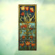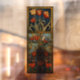 An art nouveau style sun catcher window cling featuring red and yellow tulips and a plump little blue bird. This decorative vinyl decal clings to glass to create the look of a stained glass window panel. The rich jewel tones and intricate stained glass design cast a kaleidoscope of light into your entryway. Provides privacy while allowing natural light in. Easy to apply and remove. Measures 26 x 66 cm. A beautiful touch of artisan charm for front doors, sidelights, transoms, and more.