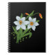 Beautiful bouquet of brightly colourful spring flowers, yellow tulips and white daffodils on black background.