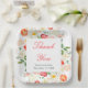 Pretty wedding paper plate with tulips, daffodils and other flowers. Perfect for a spring or summer wedding. The words can be changed to suit your own details or requirements