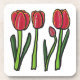 Tulips design features open and closed red tulips in a graphic style. Beautiful bulbs, the tulip is a special sight in the garden. It is easy to see why Tulip Mania occurred in the 1600s when these magnificent flowers were prized as investments. Now we can enjoy them at a more reasonable price!
