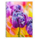 Colourful violet, purple, pink tulips on a flowerbed. Virtually all the rainbow colours present. Bright and positive floral scene. Macro photography.