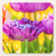 Tulips Enchanting Dark Pink Square Paper Coaster
