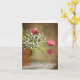 vintage tulip bouquet on lace doily with textured overlay for blank note card