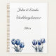 A wedding planner with a beautiful cover featuring two delicate tulips in Delft blue colours, symbolises love and new beginnings. The names of the bride and groom, elegantly scripted in flowing calligraphy, take centre stage, creating a personal and romantic touch