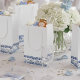 Present your wedding favours in style with this elegant white paper gift bag. The bottom of the bag features a beautiful watercolor illustration of Delft blue tulips, adding a touch of classic Dutch charm. The crisp white background allows the delicate blue floral design to truly stand out, creating a sophisticated and memorable presentation for your guests. Perfect for holding small gifts and treats, these bags will add a refined touch to your wedding celebration.