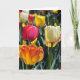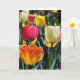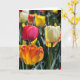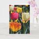 Colourful tulips are illuminated by the late afternoon sun. Note that this card may be customised with your own personal inscription.