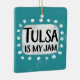 "Tulsa Is My Jam" is a fun text design with a white accent shape surrounded by white whimsical textured dots.