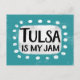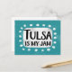 "Tulsa Is My Jam" is a fun text design with a white accent shape surrounded by white whimsical textured dots.