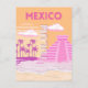 Tulum, Travel Art, Retro Art, Pink, Orange Holiday Postcard