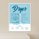 Create modern laundromat instructions wall signage using this white and blue Tumble Dryer Instructions poster design. Featuring pastel blue and white colors, dryer graphic, trendy fonts, soap bubbles motifs and a professional layout. You can edit all text, colors and even add your logo! Create custom appliance instructions for tumble dryers to display in your laundromat.