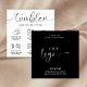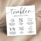 Minimalist Tumbler Care Instructions Card with black and white background, script fonts and handcrafted tumbler care icons. This editable tumbler washing guide includes the most important care information so your customers know how to care for rhinestone, personalised and decal tumblers and cups. Add your business details and logo, change the colours and make this care card your own.