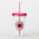 There are so many stories about the daisy. In literature, Goethe immortalised the daisy when Marguerite needed to know if Faust loved her as she plucked the daisy petals and said, "He loves me. He loves me not." The daisy received its scientific name, Bellis, from mythology. It is said that the guardian deity of the orchards pursued a young tree nymph without reciprocation. As she sought to escape him, the nymph asked the gods for help. The powerful king of Argos was grandfather to the nymph, so when she appealed to the gods for help, they transformed her into a tiny flower named Bellis, allowing her to escape a terrible fate. There is also a Christian legend involving this cheerful flower. It tells that the Wise Men, while on their journey to find the Baby Jesus requested a sign to help them find the actual birthplace once in Jerusalem. They noticed many clusters of small, white, daisies near a stable. Recognising the flower's resemblance to the star overhead, they knew they had found the Holy Family. The name, "Daisy" is thought to come from Anglo Saxon words "daes eage" meaning, literally, "day's eye". The daisy is believed, by some, to be the bringer of good fortune and blissful pleasure. Others say it symbolises innocence and purity. Along with the Sweet Pea, the Daisy is also one of APRIL's birth flowers. For such a simple little flower, the daisy has a long, impressive list of stories surrounding it. This particular kind of daisy, one of the "lollipop" family of daisies is nothing short of spectacular. Snow and pink come together on the larger, outer petals, blending beautifully to a lovely, deep pink on the smaller, interior petals. This is further deepened to the near-black burgundy at the flower's centre. It is these "rings" of colour that bring to mind the swirly, old-fashioned lollipops from which the family of flowers gets its name. It is offered here on this delightful tumbler, an excellent choice for Mother's Day, April birthdays or virtually any spring or summer occasion.