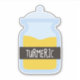 Colourful spice jar illustration with tumeric spice. Yellow and grey cooking kitchen theme for a food lover, home cook or budding chef.