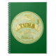 A pop-up style illustration of the lid of a tuna can. This is drawn in vector and has the look of a retro advertising poster. It has tuna fish on it and is drawn in times of green and yellow. A design for anyone who loves canned / tinned fish.