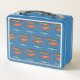 This is a standard metal lunchbox that appears to work just fine. We designed this box ourselves with an uploaded photo and custom text on the front and back. It looks absolutely beautiful except the front of the lunchbox is not centered like it shows in the photo. The print borders don't align with the inset flat part of the box where the preview photo online showed it perfectly centered in there. The back looks nice and centered though.