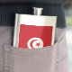 The product is a good size and came exactly as it was pictured. The lid is not attached to the flask, which could be dangerous on drunken nights... The print came out surprisingly well and looks very sharp. Would definitely recommend.