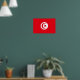 The Tunisian flag features a red star and crescent in a white disc, which is placed in the centre of a red background. It originated in 1831, but the current official version is from 1999. The flag has a 2:3 ratio.