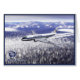 A digital painting of an Aeroflot Tupolev (Туполев) Tu-104 passenger jet in flight over a foggy, forested, winter landscape. The Tupolev Design Bureau logo appears at lower left.
