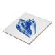 Ceramic tile in a vintage turban conch shell illustration, digitally coloured and enhanced, in deep indigo blue on a white background