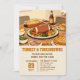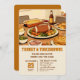 Celebrate Friendsgiving or Thanksgiving with a playful game-day twist! This unique football-themed invitation features a festive dinner table scene where a football takes center stage on the platter, surrounded by classic holiday sides, cozy candlelight, and fall décor. Perfect for families who love food, football, and festive gatherings, this design blends autumn warmth with sporty charm.