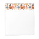 A notepad with a seasonal fall pattern border. Corn, mushrooms and flora as well as little turkeys in pilgrim hats.