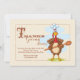 A humourous invitation featuring a comical turkey with a chef's hat holding a big wooden spoon. (PR)